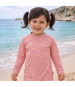 A: Το μαγιό είναι σχεδιασμένο από οικολογικά υλικά, απόλυτα φιλικά προς την ευαίσθητη παιδική επιδερμίδα. Το υλικό του είναι ανακυκλωμένο νάυλον, επιλεγμένο με σεβασμό προς το περιβάλλον.