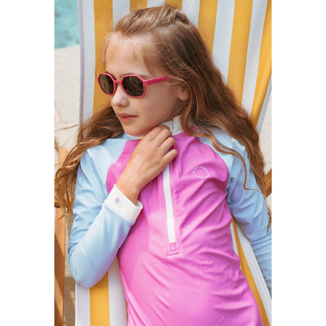 Το Swimsuit Girl προστατεύει πλήρως από τις βλαβερές ακτίνες UV χάρη στο UPF 50+. Έτσι, τα παιδιά μπορούν να παίζουν στον ήλιο με ασφάλεια, χωρίς συμβιβασμούς στην άνεση ή το στυλ.