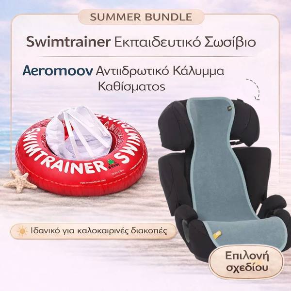 Με αυτό το σετ θα έχετε το τέλειο σωσίβιο Swimtrainer που θα μάθει στο μωρό σας να κολυμπάει και όχι απλά να επιπλέει και το αντι-ιδρωτικό κάλυμμα Air layer για να γίνονται οι μετακινήσεις σας με το καρότσι ή το κάθισμα του αυτοκινήτου . Δείτε αναλυτικά τα προΪοντα παρακάτω και καλά "δροσερά" μπανάκια!