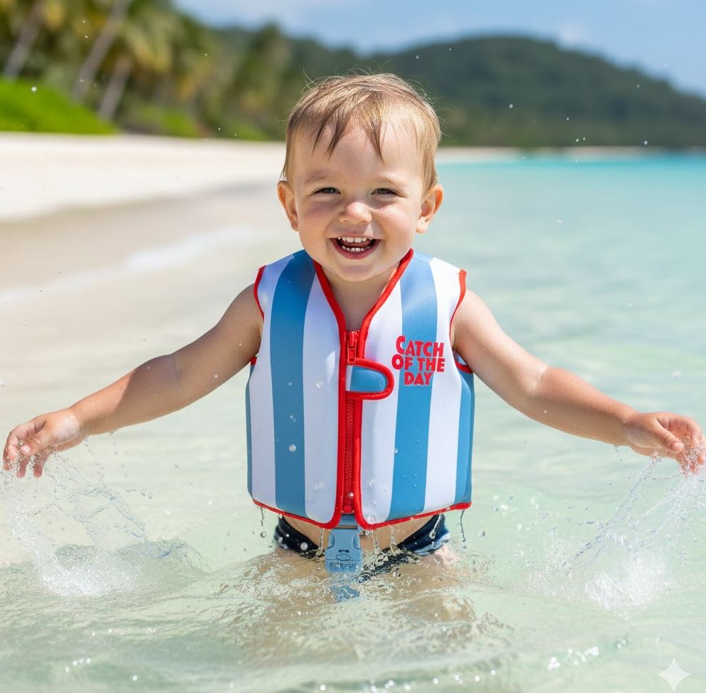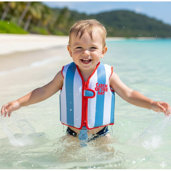 - Ιδανικό για την παραλία και την πισίνα, κρατάει το παιδί ζεστό και ασφαλές στο κρύο νερό.