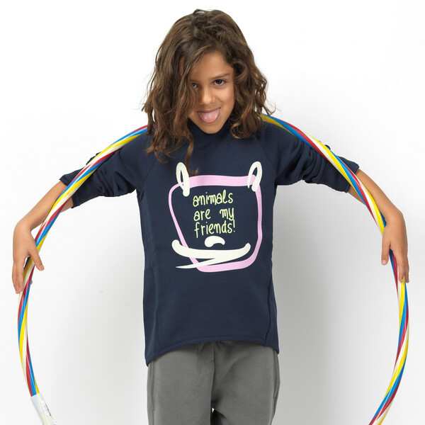 Μπλούζες με μακρύ μανίκι σε άνετη γραμμή από φούτερ ύφασμα για να ντύνετε το κορίτσι σας κάθε μέρα με οργανικό βαμβάκι.