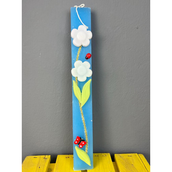 Κάθε λαμπάδα είναι μοναδική, προσεγμένη σε κάθε λεπτομέρεια, διακοσμημένη με λουλούδια και χαριτωμένες πασχαλίτσες που φέρνουν τύχη και χαρά.