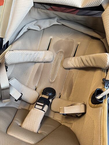 Όχι. Η ζώνη πέντε σημείων σε ένα καρότσι είναι μικρότερη από τη ζώνη ενός καθίσματος αυτοκινήτου. Το άνοιγμα στο Air Layer Group B είναι μικρότερο ώστε να μην γλιστρά το Air Layer προς τα κάτω στο καρότσι.