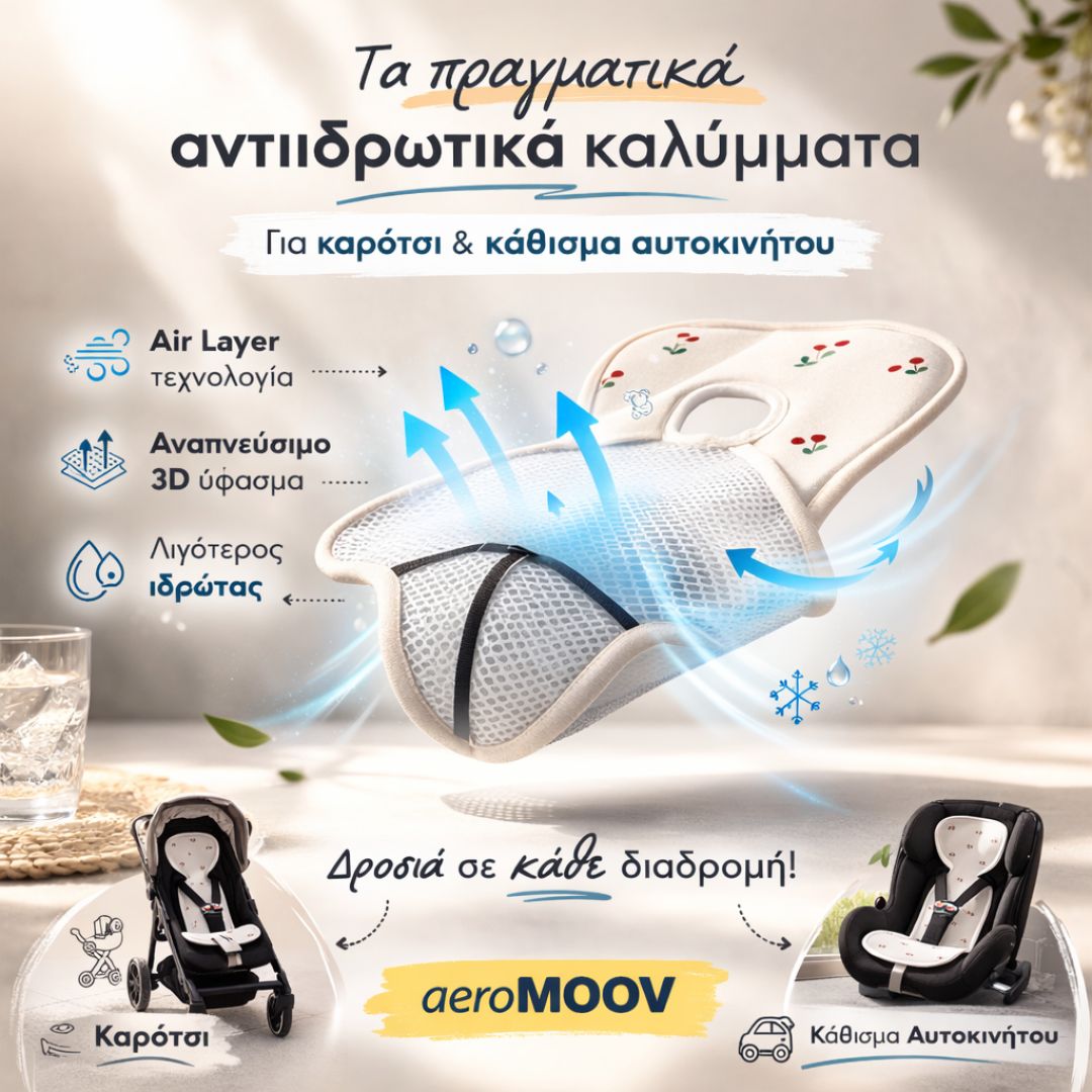 Τα καλύμματα Aeromoov είναι premium προϊοντα στην παγκόσμια αγορά, η τρισδιάστατη δομή τους είναι δοκιμασμένη, μειώνουν την εφίδρωση όσο κανένα άλλο και είναι η απόλυτη επιλογή του Mysunshine.