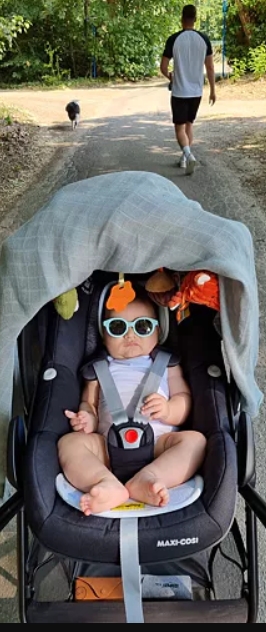 Λειτουργεί πολύ καλά και έχει και όμορφο χρώμα! Είμαι πολύ χαρούμενη γιατί τις ζεστές μέρες μπορούμε να βγούμε χωρίς η κόρη μας να βγαίνει από το καρότσι μούσκεμα στον ιδρώτα. Το μωρό είναι ζεστό, αλλά όχι πλέον βρεγμένο. Τόσο βολικό! Και σαν επιπλέον πλεονέκτημα, ταιριάζει πολύ ωραία χρωματικά με το καρότσι μας.