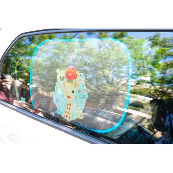 A: Οι ηλιοπροστασίες της Σόφις μπλοκάρουν τις υπεριώδεις ακτινοβολίες και εφαρμόζονται εύκολα με μια κεντρική βεντούζα. Έχουν διαστάσεις 49 x 36cm και ταιριάζουν σε όλα τα αυτοκίνητα, εξασφαλίζοντας ένα ευχάριστο και ασφαλές ταξίδι.