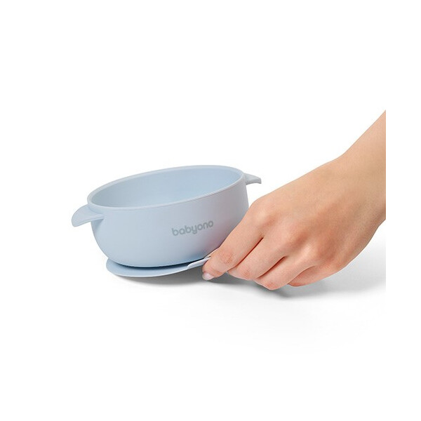 BabyOno: Μπολ σιλικόνης με λαβές, καπάκι & βάση με βεντούζα - Μπλε