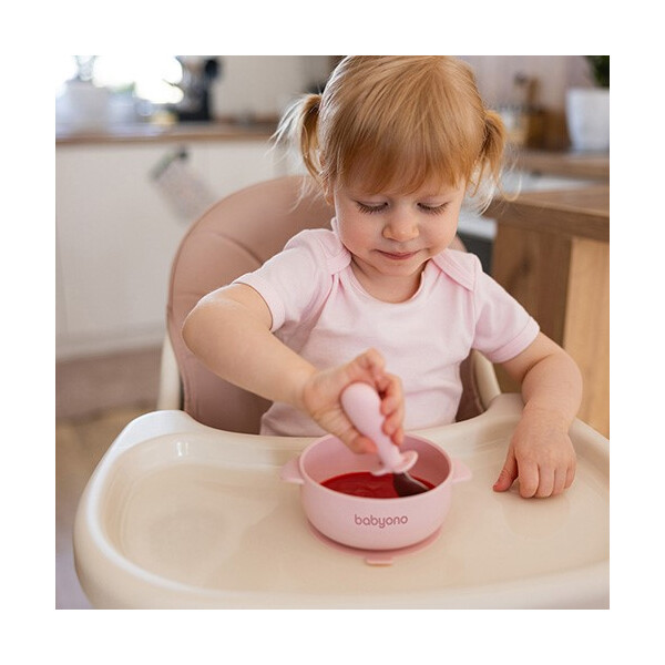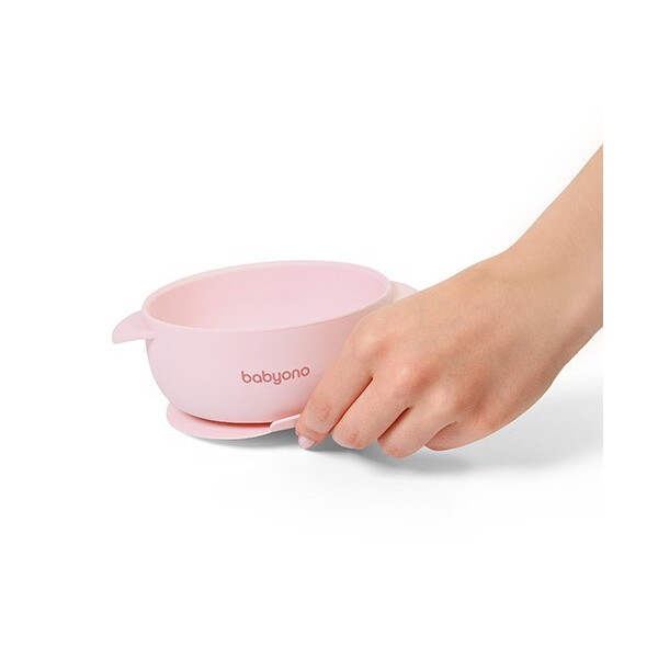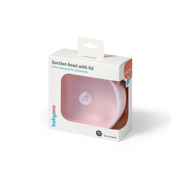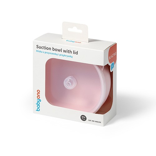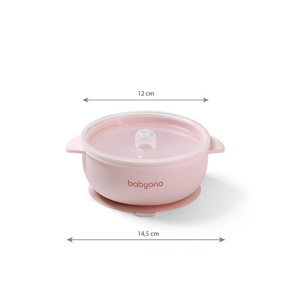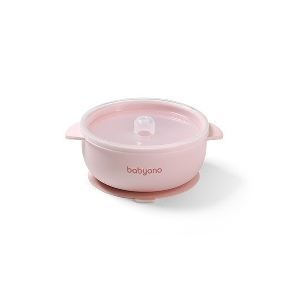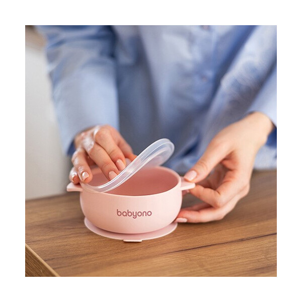 BabyOno: Μπολ σιλικόνης με λαβές, καπάκι & βάση με βεντούζα - Ροζ