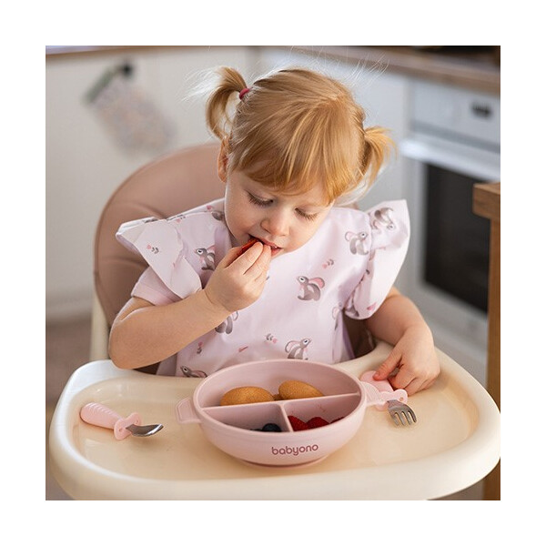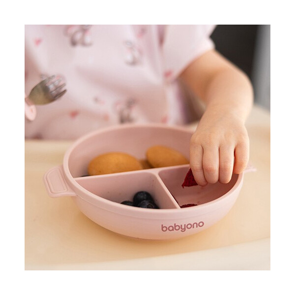 Το πιάτο σιλικόνης με τρεις θήκες, καπάκι και βάση αναρρόφησης της Babyono κάνει την εισαγωγή στερεών τροφών εύκολη και διασκεδαστική! Ειδικά σχεδιασμένο για την μέθοδο BLW (Baby Led Weaning), ενθαρρύνει το μωρό να τρώει μόνο του, δοκιμάζοντας νέες γεύσεις με ασφάλεια – χωρίς ακαταστασία στο τραπέζι.