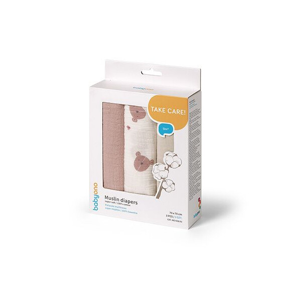 BabyOno: Βαμβακερές πάνες αγκαλιάς - μουσελίνες 70x70 cm (Σετ 3 τμχ)