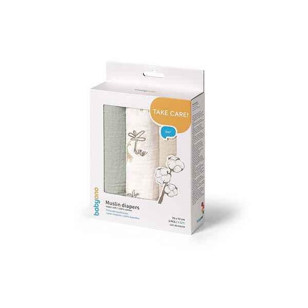 BabyOno: Βαμβακερές πάνες αγκαλιάς - μουσελίνες 70x70 cm (Σετ 3 τμχ)