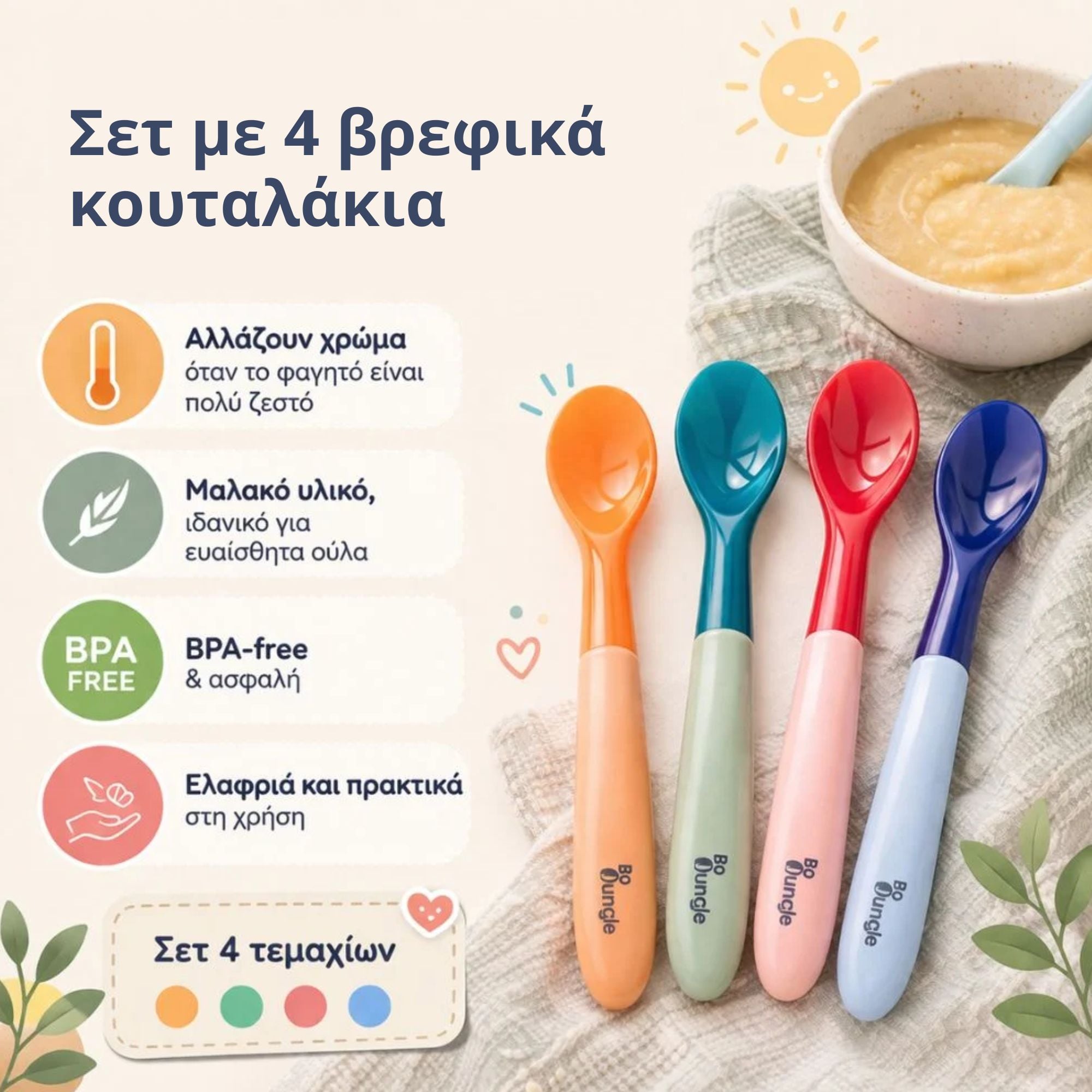 Τα Heat Sensitive κουταλάκια αλλάζουν χρώμα όταν το φαγητό είναι πολύ ζεστό, δίνοντάς σου άμεσα ένα ξεκάθαρο σήμα ότι πρέπει να περιμένεις λίγο.