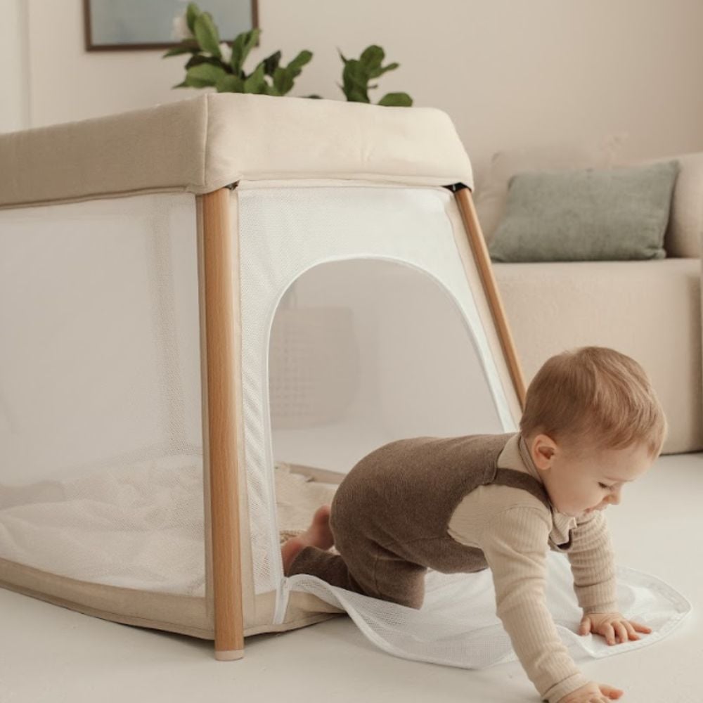 Το πλαϊνό άνοιγμα με φερμουάρ κάνει την πρόσβαση εύκολη και γρήγορη — ιδανικό για παιχνίδι ή για να πάρεις αγκαλιά το μωρό χωρίς κόπο.