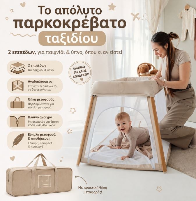 Ιδανικό παρκοκρέβατο για ύπνο εντός και εκτός σπιτιού