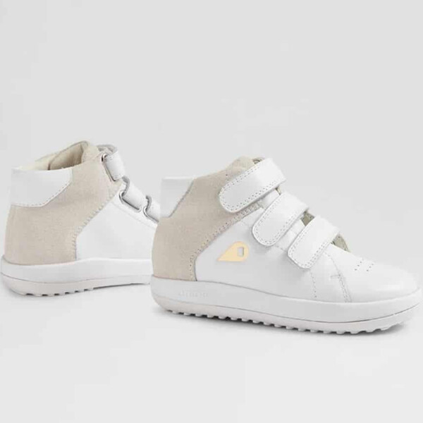 A: Η σόλα από καουτσούκ προσφέρει επιπλέον πρόσφυση για ασφάλεια σε κάθε βήμα, ενώ τα υλικά από δέρμα και σουέντ είναι ανθεκτικά για τις καθημερινές περιπέτειες και το παιχνίδι.