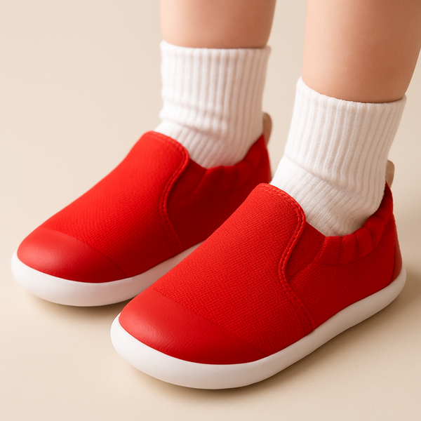 Με την ελευθεριά των ξυπόλητων ποδιών, τα παιδια μπορούν να μάθουν όλα τα σημαντικά πράγματα που κάνουν τα πόδια τους (πέρα από το κλωτσάνε τα παιχνίδια τους μέσα στο σπίτι)  Ρωτήστε τους: Με πόσους τρόπους κινούν τα πόδια τους? Μπορούν να μαζέψουν τα δαχτυλάκια τους?  Πόσο πολύ μπορούν να λυγίσουν τα πόδια τους? Μπορούν να απλώσουν τα δάχτυλά τους ή να τα ανασηκώσουν ένα ένα? Κάντε το σαν παιχνίδι και μετά δοκιμάστε το ίδιο όταν φοράνε τα παπούτσια τους. Τα σωστά παπούτσια πρέπει να επιτρέπουν στο πέλμα να λυγίζει να μαζεύει και να απλώνουν τα δάχτυλα τους όσο πιο πολύ μπορούν.