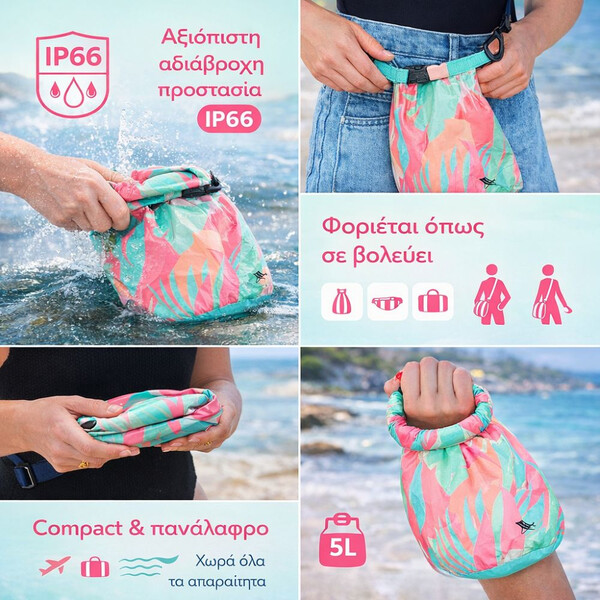 Ελαφρύ, πρακτικό και έτοιμο για κάθε εξόρμηση, γίνεται ο ιδανικός σύντροφος είτε εξερευνάς τη θάλασσα είτε απλώς χαλαρώνεις στην ακτή. Και όταν τελειώσει η βουτιά; Μεταφέρει εύκολα ό,τι είναι βρεγμένο, χωρίς να επηρεάζει τα υπόλοιπα.