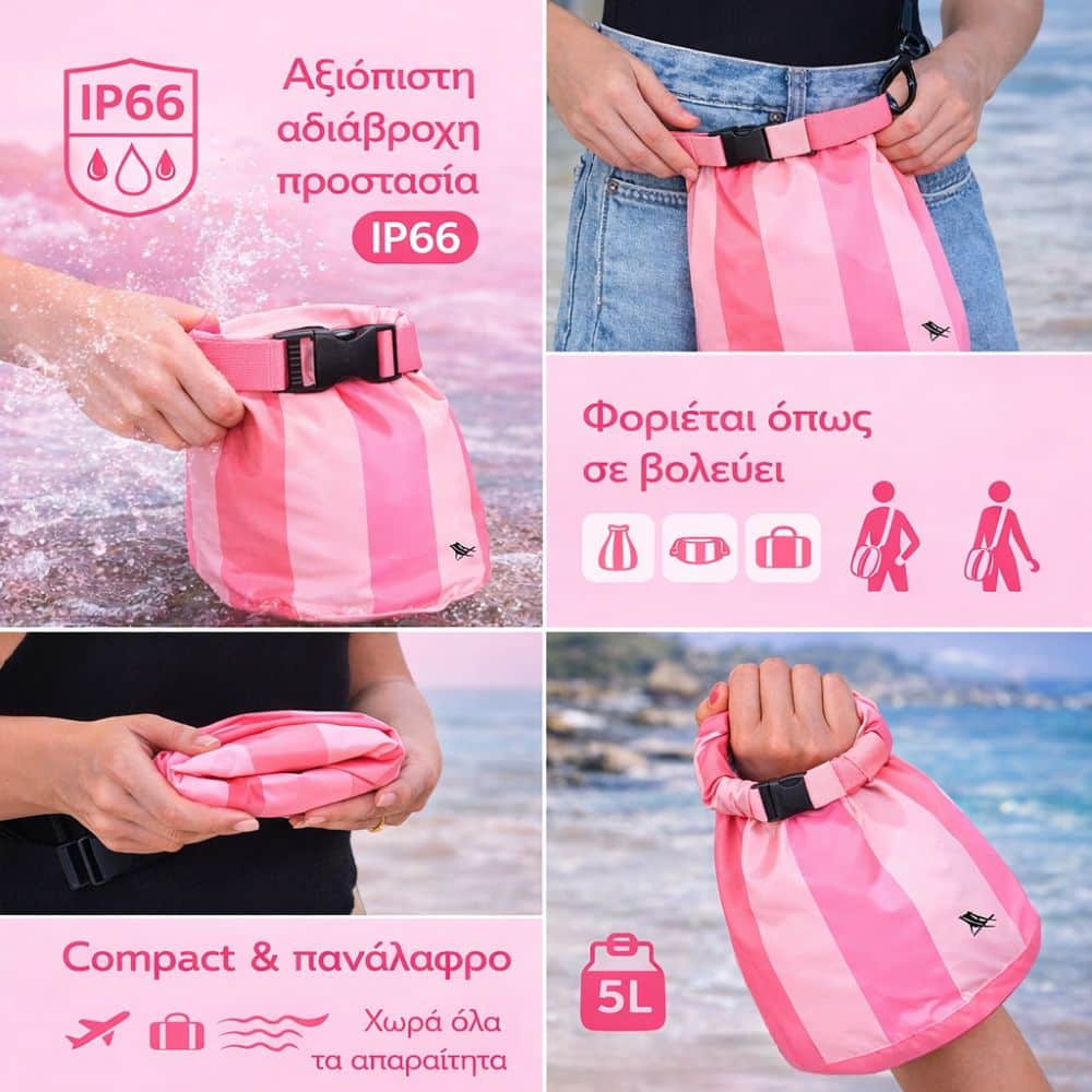 Υπάρχουν στιγμές που το μόνο που θέλεις είναι να μπεις στο νερό χωρίς δεύτερη σκέψη. Χωρίς να ανησυχείς για το κινητό, τα κλειδιά ή το πορτοφόλι σου. Το Dry Bag της Dock & Bay είναι εκεί ακριβώς για αυτό: για να κρατά τα απαραίτητα προστατευμένα, ώστε εσύ να απολαμβάνεις κάθε στιγμή — μέσα και έξω από το νερό.