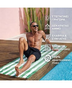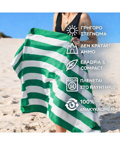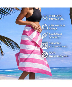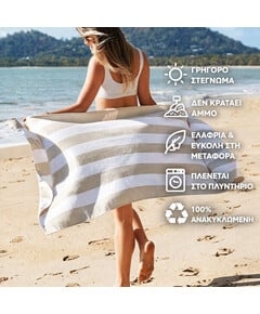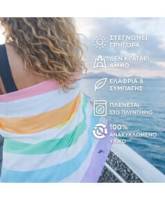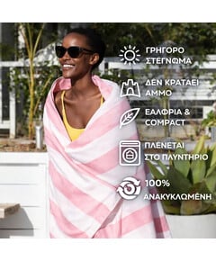 Με σούπερ γρήγορο στέγνωμα και χωρίς να κρατάνε την άμμο, θα πεις αντίο στις μουσκεμένες, γεμάτες άμμο, πετσέτες που μυρίζουν άσχημα. Μια απλή κίνηση και η άμμος φεύγει – αφήνοντάς σου μόνο τη φρεσκάδα και την άνεση!