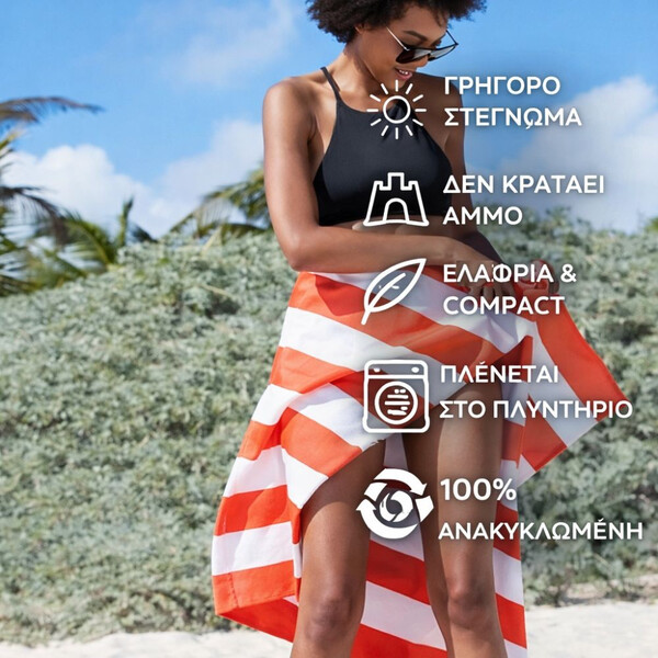 Υφή: Εξαιρετικά λεία και πολύ λεπτή Ένας από τα βασικά χαρακτηριστικά είναι ότι «η άμμος δεν κολλάει» στις πετσέτες χάρη στην λεία υφή τους.