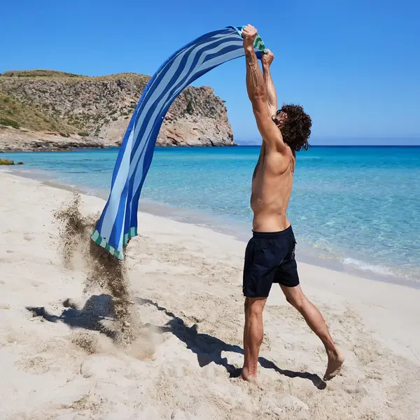 A: Οι πετσέτες Dock & Bay είναι σχεδιασμένες να μην κρατάνε την άμμο και να διατηρούν τη φρεσκάδα τους χωρίς δυσάρεστες οσμές. Είναι κατασκευασμένες από μικροΐνες (83% μικροΐνες, 17% πολυαμίδιο) από 100% ανακυκλωμένα υλικά και πλένονται κανονικά στο πλυντήριο, με στόχο να διαρκούν μια ζωή.