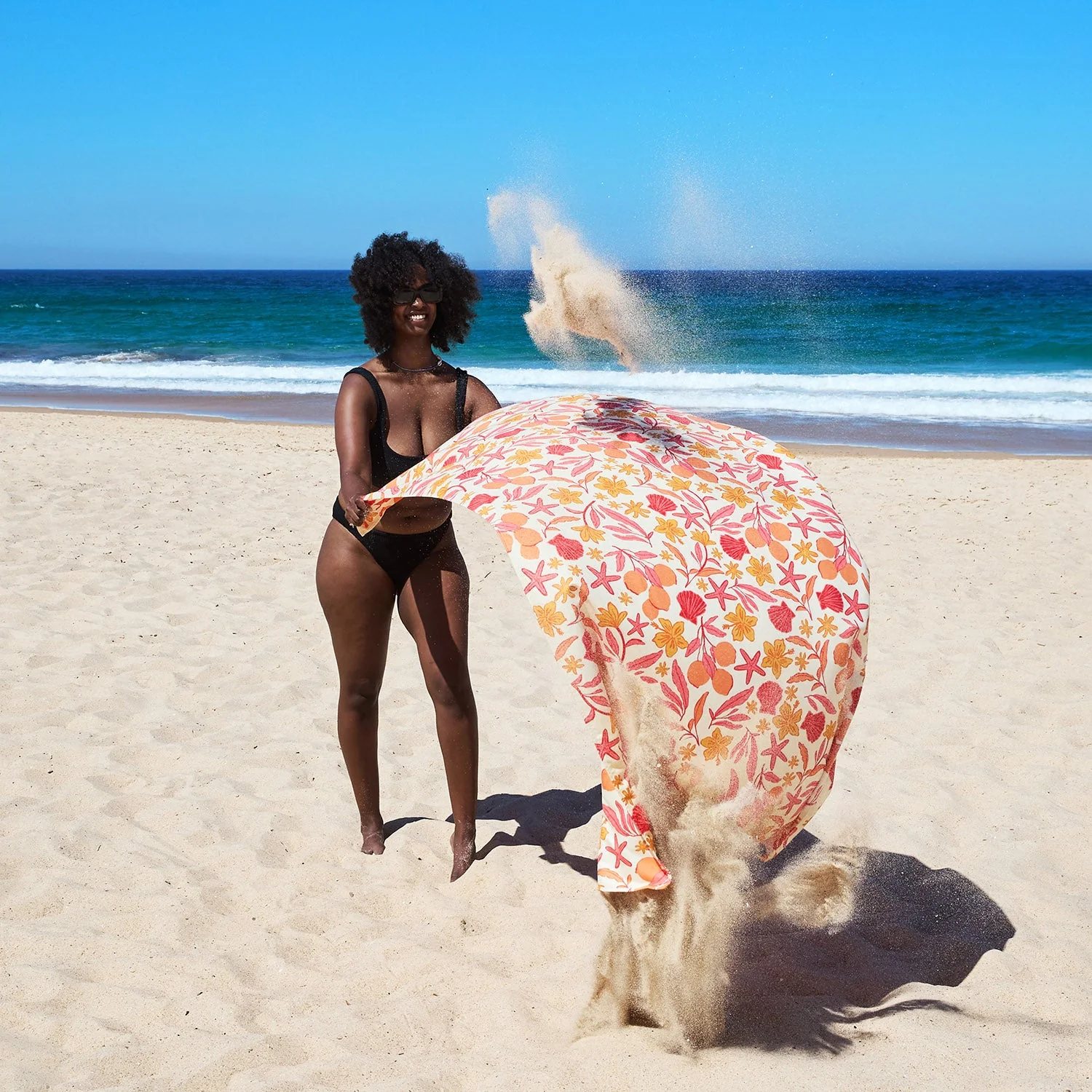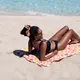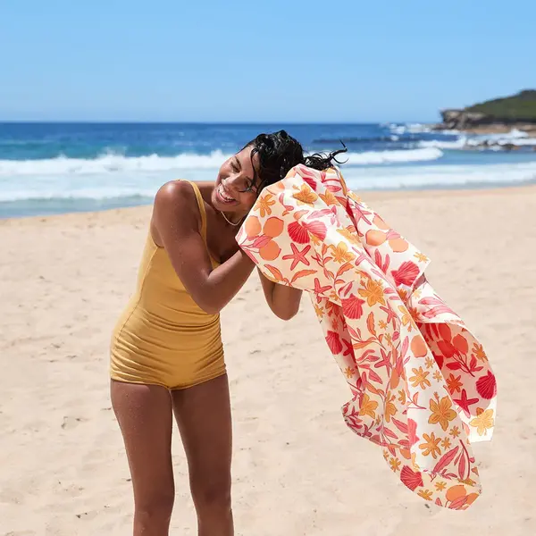 A: Η πετσέτα είναι φτιαγμένη από μικροΐνες και δεν κρατάει την άμμο, κάτι που σημαίνει ότι φεύγει εύκολα με ένα τίναγμα. Επιπλέον, στεγνώνει 3 φορές πιο γρήγορα από άλλες πετσέτες και διατηρεί τη φρεσκάδα της, χωρίς να κρατάει δυσάρεστες οσμές.