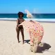 A: Παρόλο που είναι μεγάλη (160x90cm), η πετσέτα Dock & Bay είναι συμπαγής και πανάλαφρη (380g). Διπλώνει και μπαίνει στο πουγκάκι αποθήκευσης (26x15cm) που περιλαμβάνεται, εξοικονομώντας χώρο στην τσάντα σας.