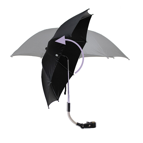 Επιπλέον, η «τεχνολογία flex» σας επιτρέπει να λυγίζετε τον βραχίονα της ομπρέλας τόσο στο πάνω όσο και στο κάτω μέρος. Ταιριάζει στη λαβή όλων των καροτσιών, σε στρογγυλούς και τετράγωνους σωλήνες και προσαρμόζεται εύκολα στη μπάρα ώθησης με το «σύστημα easyfix».