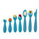 Ένα ολοκληρωμένο σετ που περιλαμβάνει 7 τεμάχια με εκπαιδευτικά κουτάλια/πιρούνια & μαχαίρι. Είναι σχεδιασμένα από Εξειδικευμένο Παιδίατρο στην Διατροφή και κατασκευασμένα από μαλακή σιλικόνη που προστατεύει τα δοντάκια του μωρού που αναπτύσσονται και βοηθάει να τρώει μόνο του με ασφάλεια.