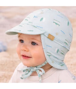 A: Ναι, το καπέλο προσφέρει ολοκληρωμένη προστασία UV 50+. Το φαρδύ γείσο σκιάζει τέλεια τα ματάκια και το πρόσωπο, ενώ το μακρύ πίσω ύφασμα καλύπτει πλήρως τον αυχένα και τα αυτιά.