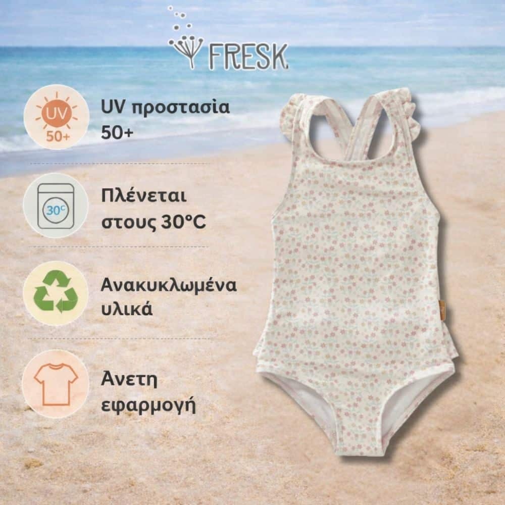 Με το ολόσωμο μαγιό Fresk, η μικρή σου γοργονίτσα θα ξεχωρίζει σε κάθε της εμφάνιση, ενώ εσύ θα νιώθεις σιγουριά για την προστασία της κάτω από τον ήλιο