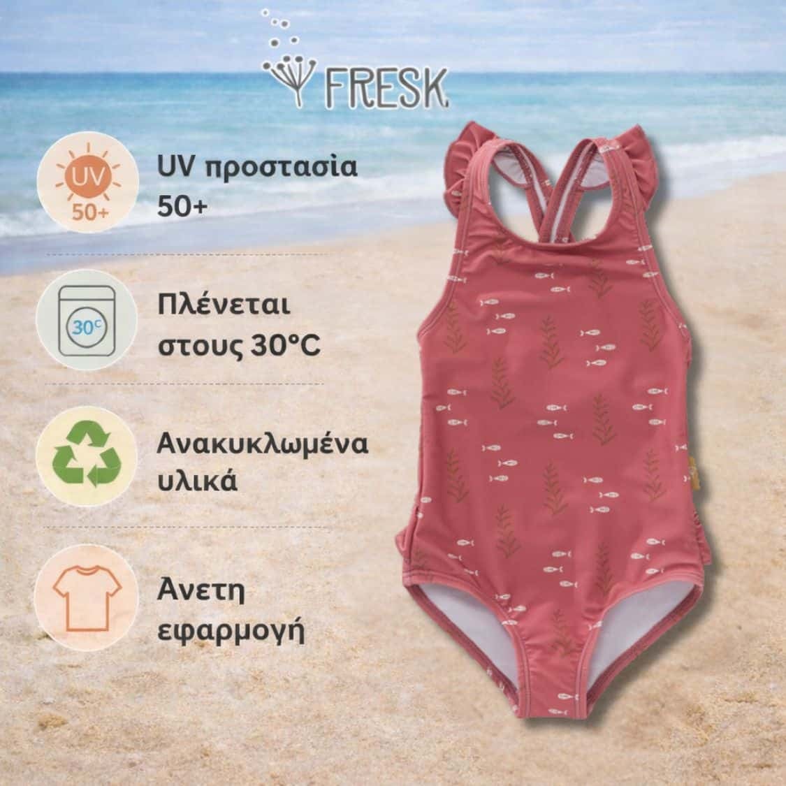 Με το ολόσωμο μαγιό Fresk, η μικρή σου γοργονίτσα θα ξεχωρίζει σε κάθε της εμφάνιση, ενώ εσύ θα νιώθεις σιγουριά για την προστασία της κάτω από τον ήλιο