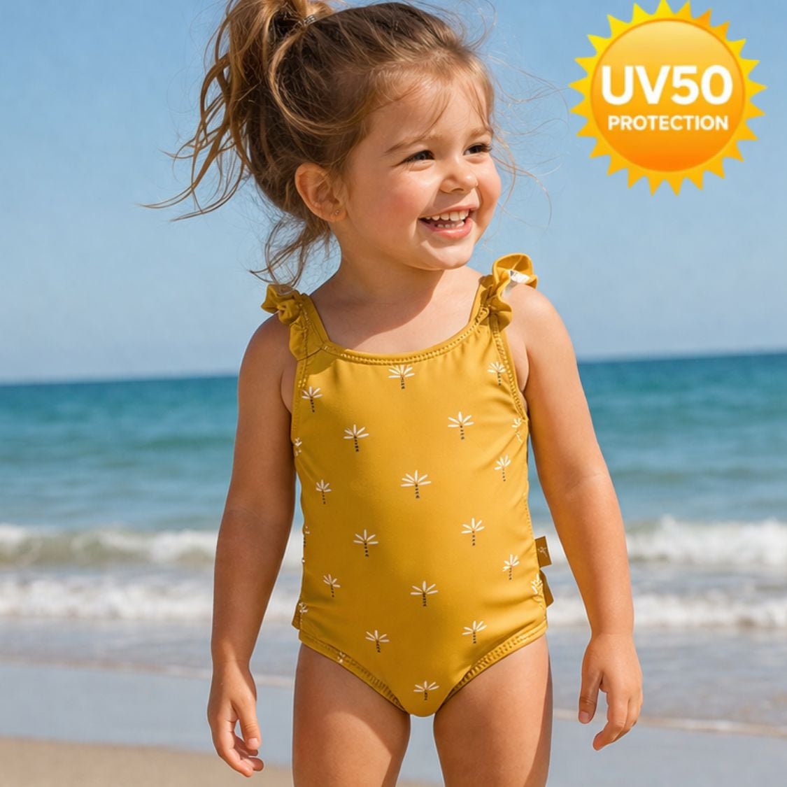 Η UV προστασία 50+ φροντίζει το ευαίσθητο δερματάκι της, ώστε να απολαμβάνει τον ήλιο με ασφάλεια