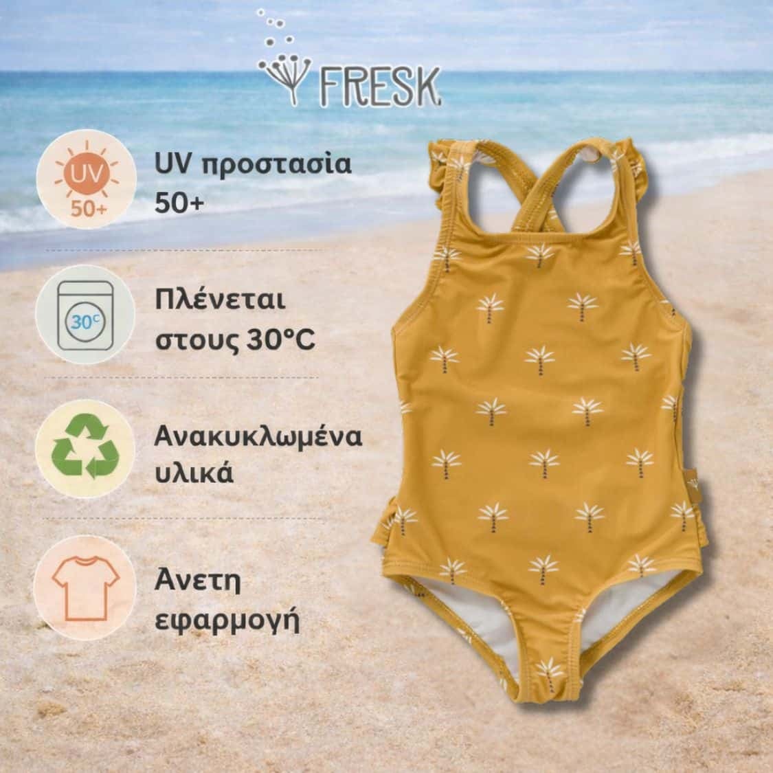 Με το ολόσωμο μαγιό Fresk, η μικρή σου γοργονίτσα θα ξεχωρίζει σε κάθε της εμφάνιση, ενώ εσύ θα νιώθεις σιγουριά για την προστασία της κάτω από τον ήλιο