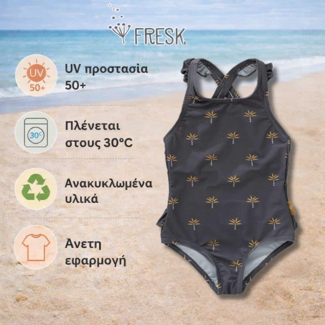 Με το ολόσωμο μαγιό Fresk, η μικρή σου γοργονίτσα θα ξεχωρίζει σε κάθε της εμφάνιση, ενώ εσύ θα νιώθεις σιγουριά για την προστασία της κάτω από τον ήλιο