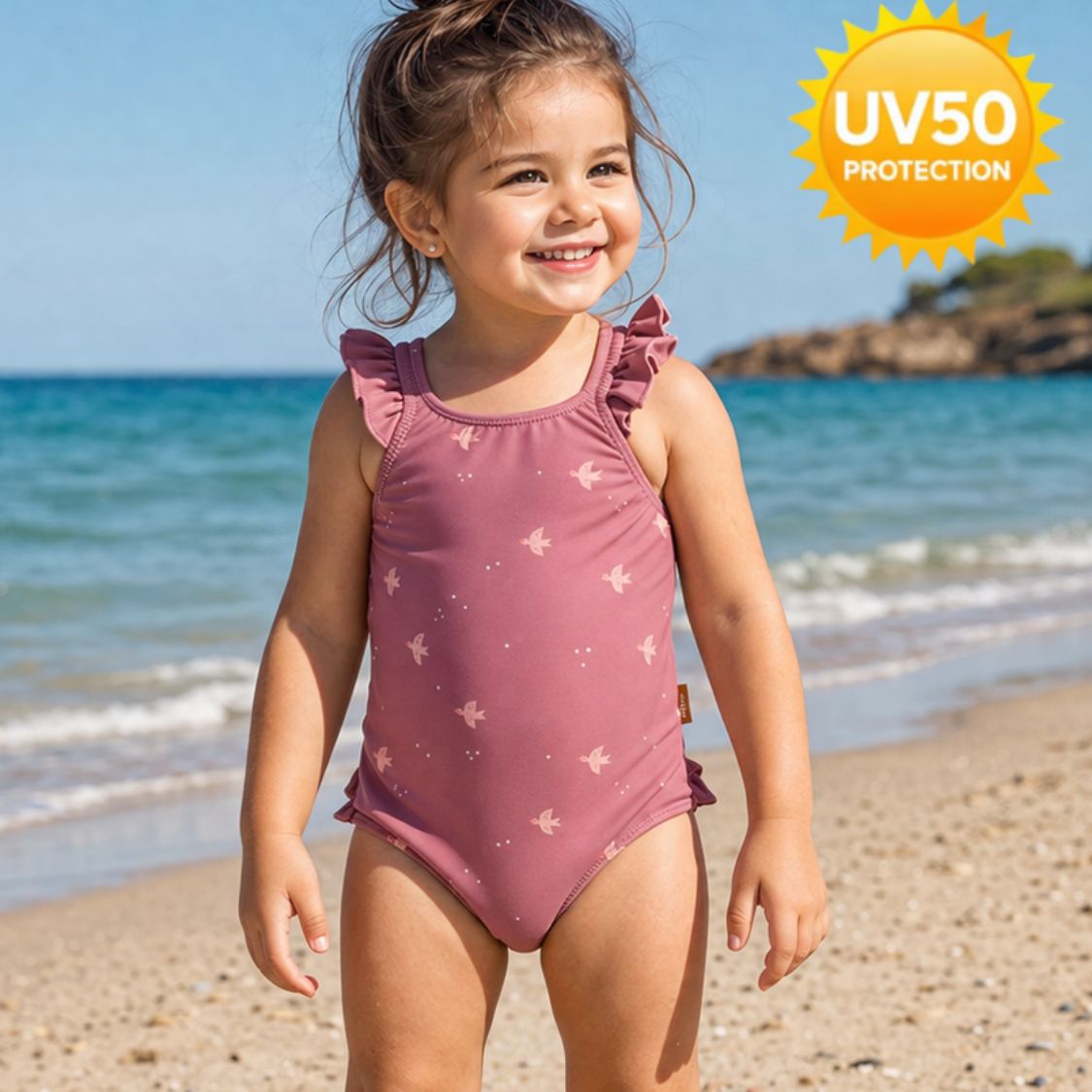 Η UV προστασία 50+ φροντίζει το ευαίσθητο δερματάκι της, ώστε να απολαμβάνει τον ήλιο με ασφάλεια