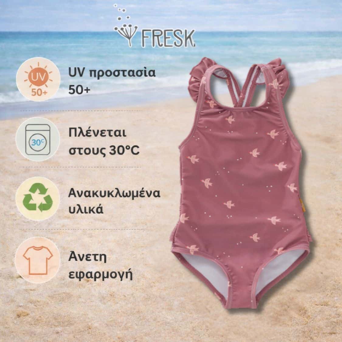 Με το ολόσωμο μαγιό Fresk, η μικρή σου γοργονίτσα θα ξεχωρίζει σε κάθε της εμφάνιση, ενώ εσύ θα νιώθεις σιγουριά για την προστασία της κάτω από τον ήλιο
