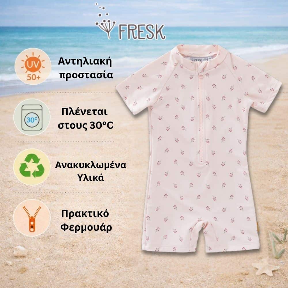 Με το ολόσωμο μαγιό Fresk, το μικρό σου μπορεί να απολαμβάνει κάθε στιγμή στη θάλασσα ή την πισίνα, ενώ εσύ νιώθεις ήρεμη πως είναι προστατευμένο από τον ήλιο
