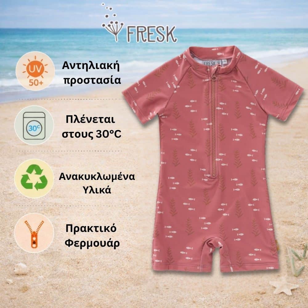 Με το ολόσωμο μαγιό Fresk, το μικρό σου μπορεί να απολαμβάνει κάθε στιγμή στη θάλασσα ή την πισίνα, ενώ εσύ νιώθεις ήρεμη πως είναι προστατευμένο από τον ήλιο