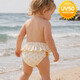 A: Ναι, το μαγιό έχει σχεδιαστεί με UV προστασία 50+, εξασφαλίζοντας ότι το δερματάκι του παιδιού σας προφυλάσσεται από τις επικίνδυνες ακτινοβολίες του ήλιου.