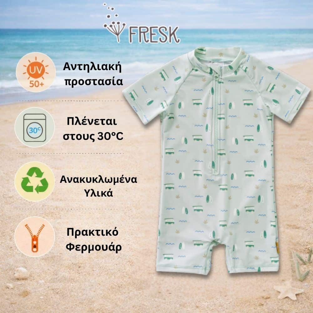 Με το ολόσωμο μαγιό Fresk, το μικρό σου μπορεί να απολαμβάνει κάθε στιγμή στη θάλασσα ή την πισίνα, ενώ εσύ νιώθεις ήρεμη πως είναι προστατευμένο από τον ήλιο