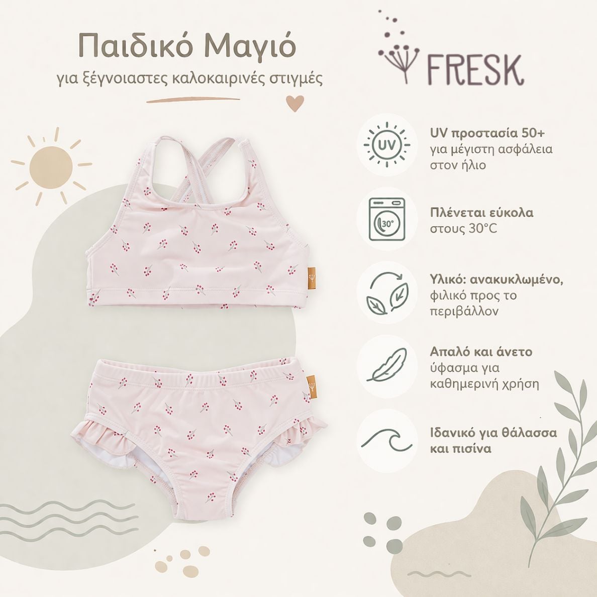 A: Ναι, το σετ μπικίνι έχει ενσωματωμένη προστασία UV50+ που είναι ειδικά σχεδιασμένη για να προστατεύει το ευαίσθητο δερματάκι του παιδιού από τον ήλιο.
