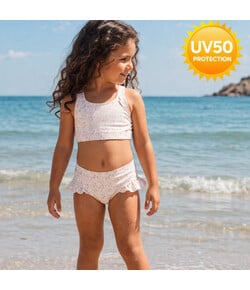 A: Το μαγιό προσφέρει UV προστασία 50+, που είναι η υψηλότερη δυνατή, και προστατεύει το ευαίσθητο δερματάκι του παιδιού από τον ήλιο.