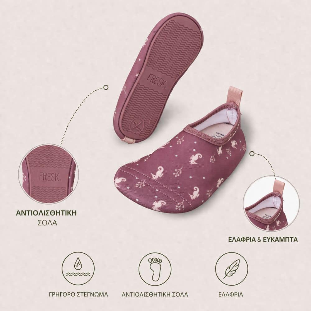 Στην παραλία, στην πισίνα ή στο κάμπινγκ, τα σωστά παπουτσάκια κάνουν τη διαφορά. Τα Fresk είναι σχεδιασμένα για άνεση, ασφάλεια και στυλ – ώστε τα παιδιά να μπορούν να κινούνται ελεύθερα, χωρίς να τα ενοχλεί τίποτα.