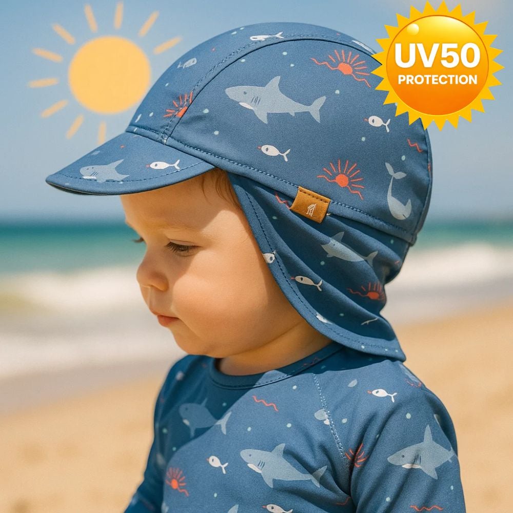 A: Ναι, το καπέλο είναι τύπου λεγεωνάριου με προστασία UV50+ και έχει σχεδιαστεί για να προστατεύει αποτελεσματικά το κεφαλάκι, τα αυτάκια και τον σβέρκο του παιδιού.