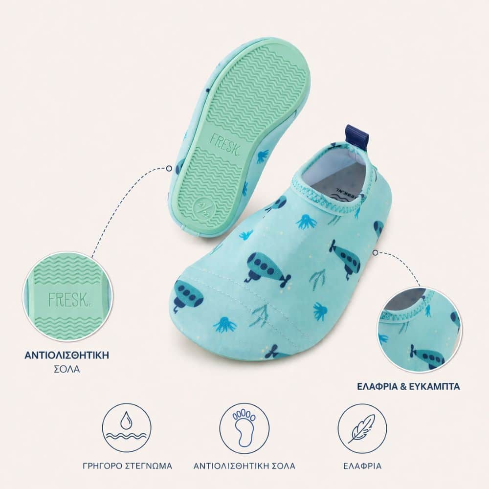 Στην παραλία, στην πισίνα ή στο κάμπινγκ, τα σωστά παπουτσάκια κάνουν τη διαφορά. Τα Fresk είναι σχεδιασμένα για άνεση, ασφάλεια και στυλ – ώστε τα παιδιά να μπορούν να κινούνται ελεύθερα, χωρίς να τα ενοχλεί τίποτα.