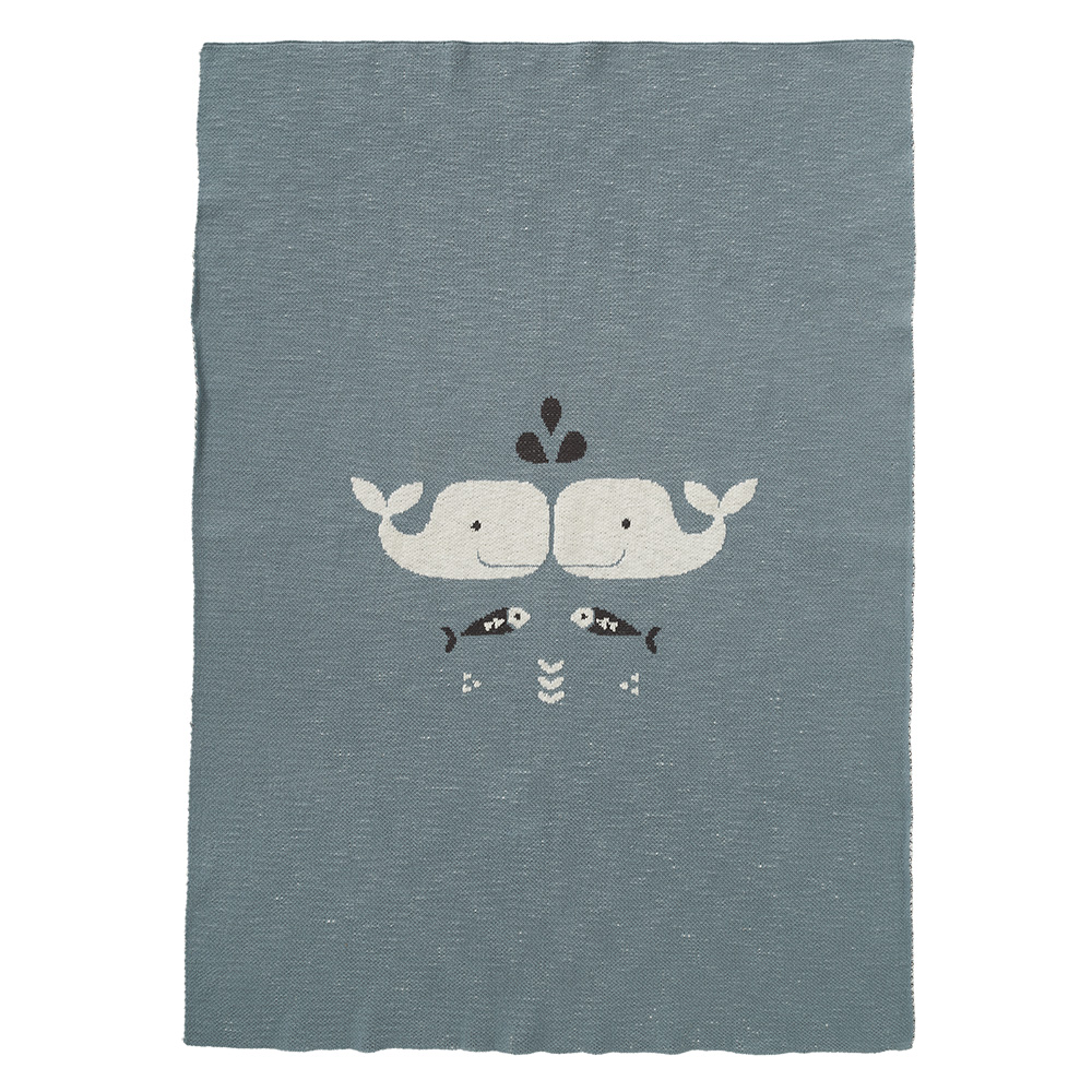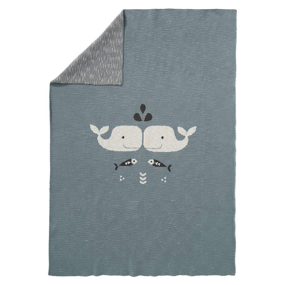 Fresk: Πλεκτή Κουβέρτα 100% βιολογικό βαμβάκι 100x150cm - Whale Blue fog