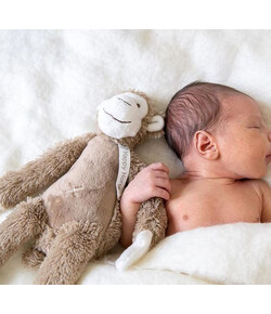 Ένα γλυκό, μαλακό και παιχνιδιάρικο μαιμουδάκι με μακριά ποδαράκια για να φτάνει παντού που θα κρατάει συντροφιά με τη μελωδία του, κάθε στιγμή του παιδιού σας. Την ώρα της βόλτας, την ώρα του παιχνιδιού, την ώρα του ύπνου.