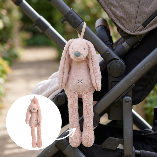 Ένα γλυκό, μαλακό και χνουδωτό κουνελάκι με μακριά αυτάκια και μακριά πόδια που θα κρατάει συντροφιά με τη μελωδία του, κάθε στιγμή του παιδιού σας.