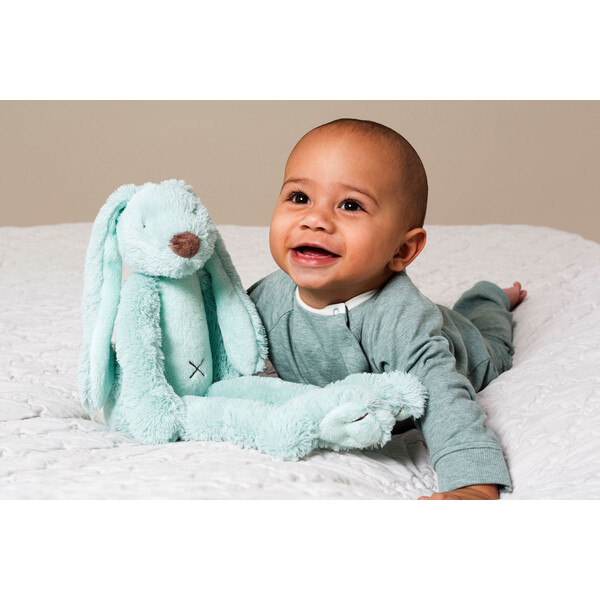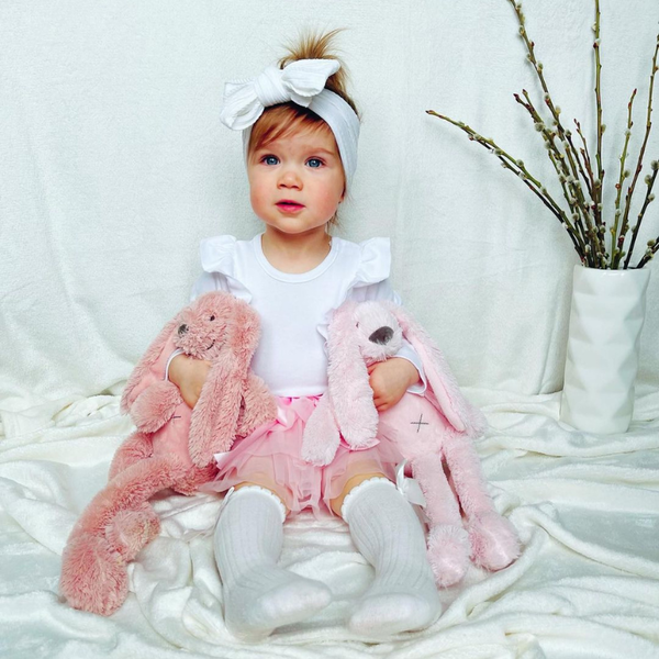 Ένα γλυκό, μαλακό και χνουδωτό κουνελάκι με μακριά αυτάκια και μακριά πόδια που θα κρατάει συντροφιά με τη μελωδία του, κάθε στιγμή του παιδιού σας.
